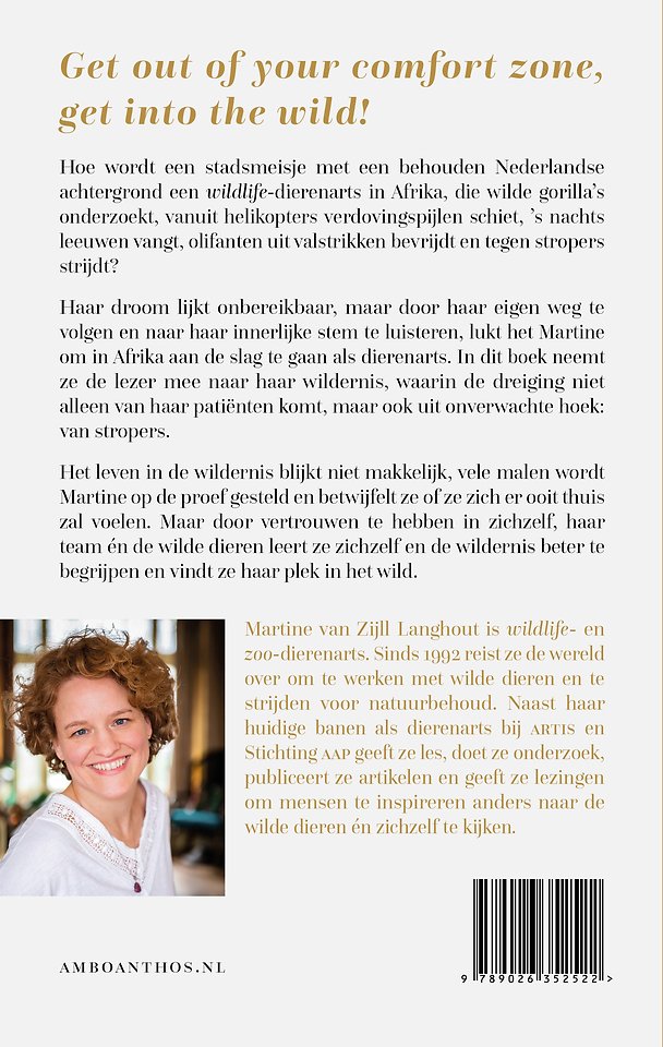 Martine van Zijll Langhout is wildlife- en zoo-dierenarts. Sinds 1992 reist ze de wereld over om te werken met wilde dieren en te strijden voor natuurbehoud. Naast haar huidige banen als dierenarts bij artis en Stichting AAP geeft ze les, doet ze onderzoek, publiceert ze artikelen en geeft ze lezingen om mensen te inspireren anders naar wilde dieren én zichzelf te kijken.